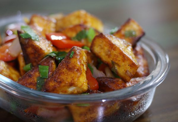 This Indo-Chinese dish is one of the favourite dish at my home. Grilled Paneer or Cottage cheese cubes coated with spicy, tangy sauce.